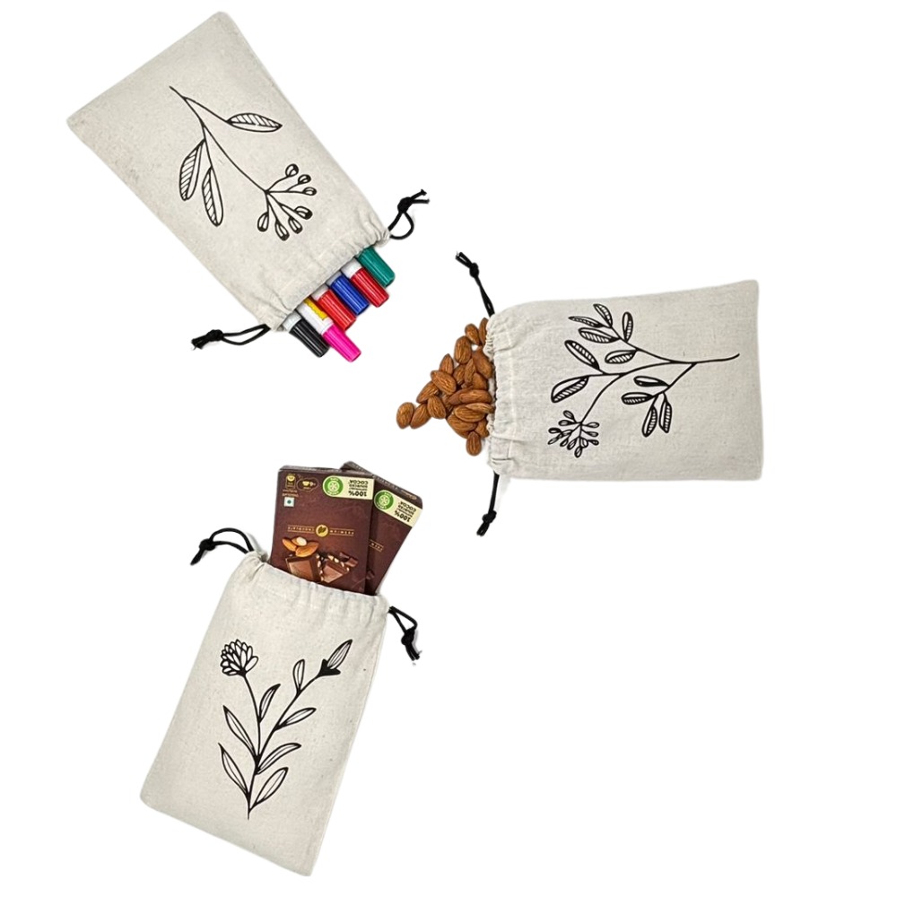 - Multi purpose cotton travel pouch: These drawstring bags are ideal to keep your Earphones, Charges, Make-up, Socks, Sunglasses, Toiletries etc